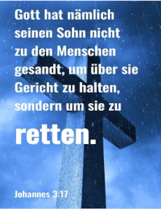 Johannes 3,16: “Denn so hat Gott die Welt geliebt, daß er seinen eingeborenen Sohn gab, damit jeder, der an ihn glaubt, nicht verlorengeht, sondern ewiges Leben hat.”